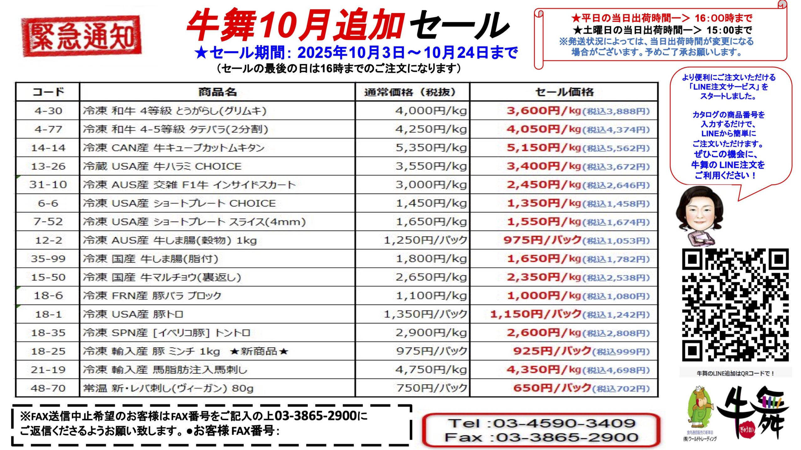 ※より便利にご注文いただける「LINE注文サービス」をスタートしました。カタログの商品番号を入力するだけで、LINEから簡単にご注文いただけます。ぜひこの機会に、牛舞の LINE注文をご利用ください!