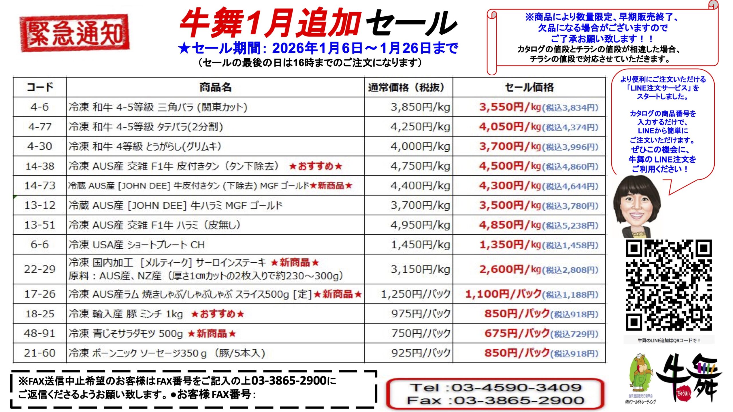 ※より便利にご注文いただける「LINE注文サービス」をスタートしました。カタログの商品番号を入力するだけで、LINEから簡単にご注文いただけます。ぜひこの機会に、牛舞の LINE注文をご利用ください!