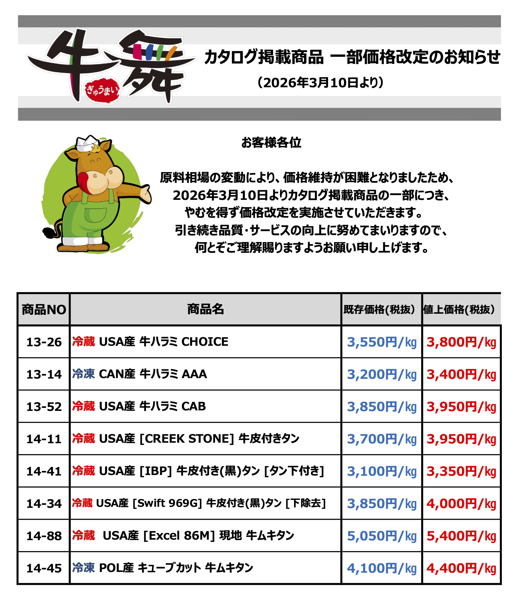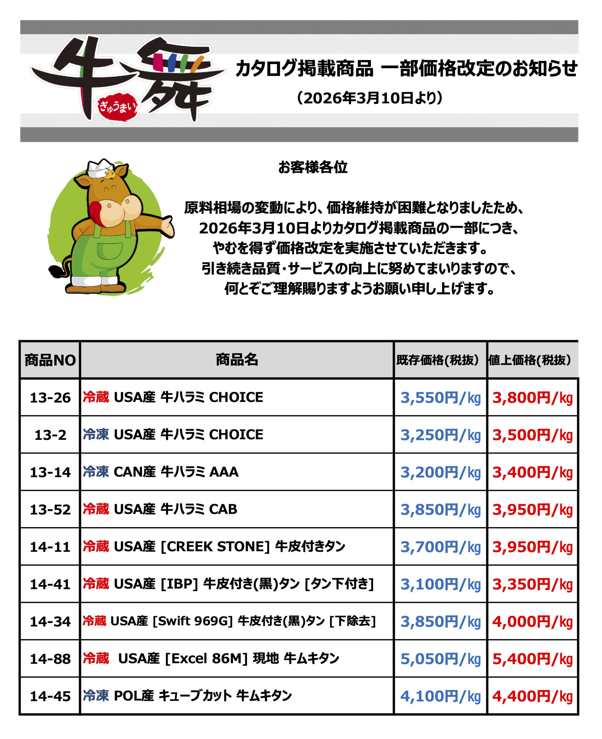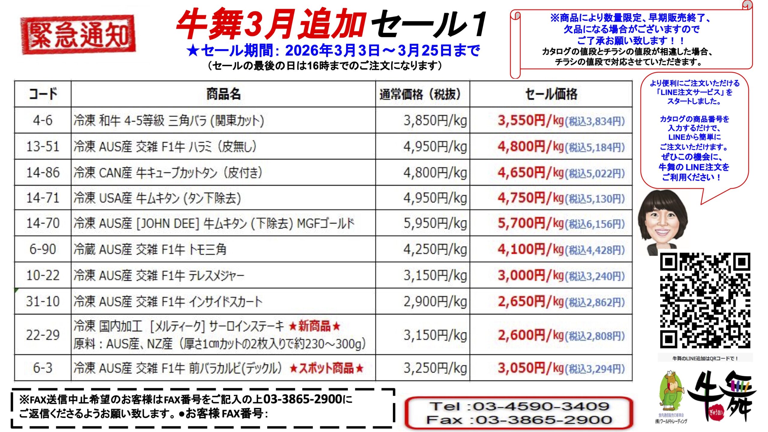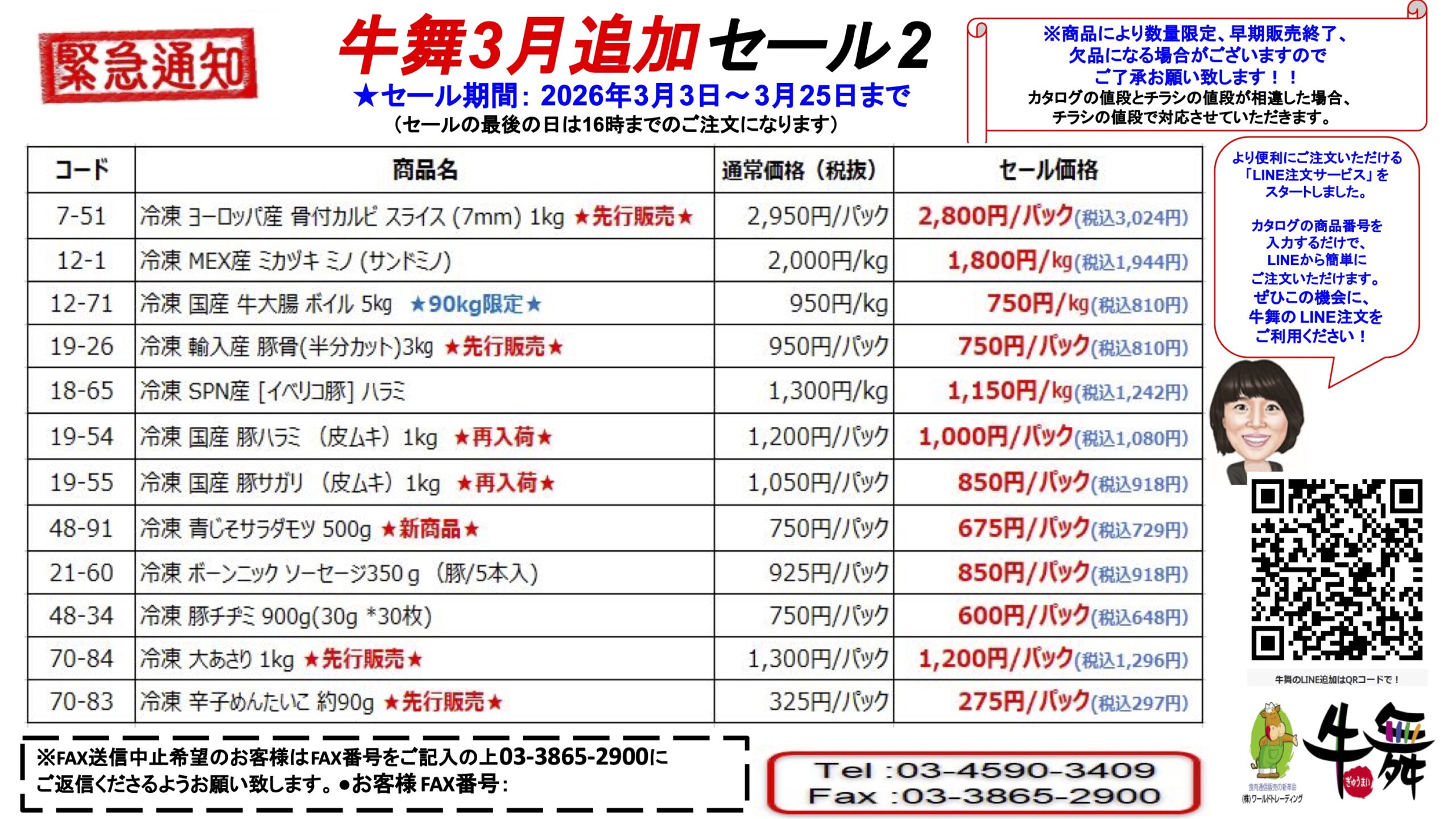 ※より便利にご注文いただける「LINE注文サービス」をスタートしました。カタログの商品番号を入力するだけで、LINEから簡単にご注文いただけます。ぜひこの機会に、牛舞の LINE注文をご利用ください!
